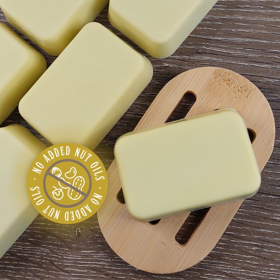 Our Lemon Balm, Comfrey, Chickweed & Calendula with NO ADDED NUT OILS Handmade Soaps are available as Nude or Labelled:
